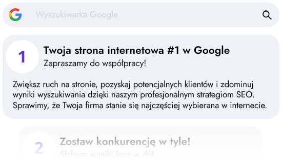 Nasze strony szybciej osiągają wyższe pozycje w Google i przyciągają więcej odbiorców a to wpływa na wyniki finansowe Twojej działalności.